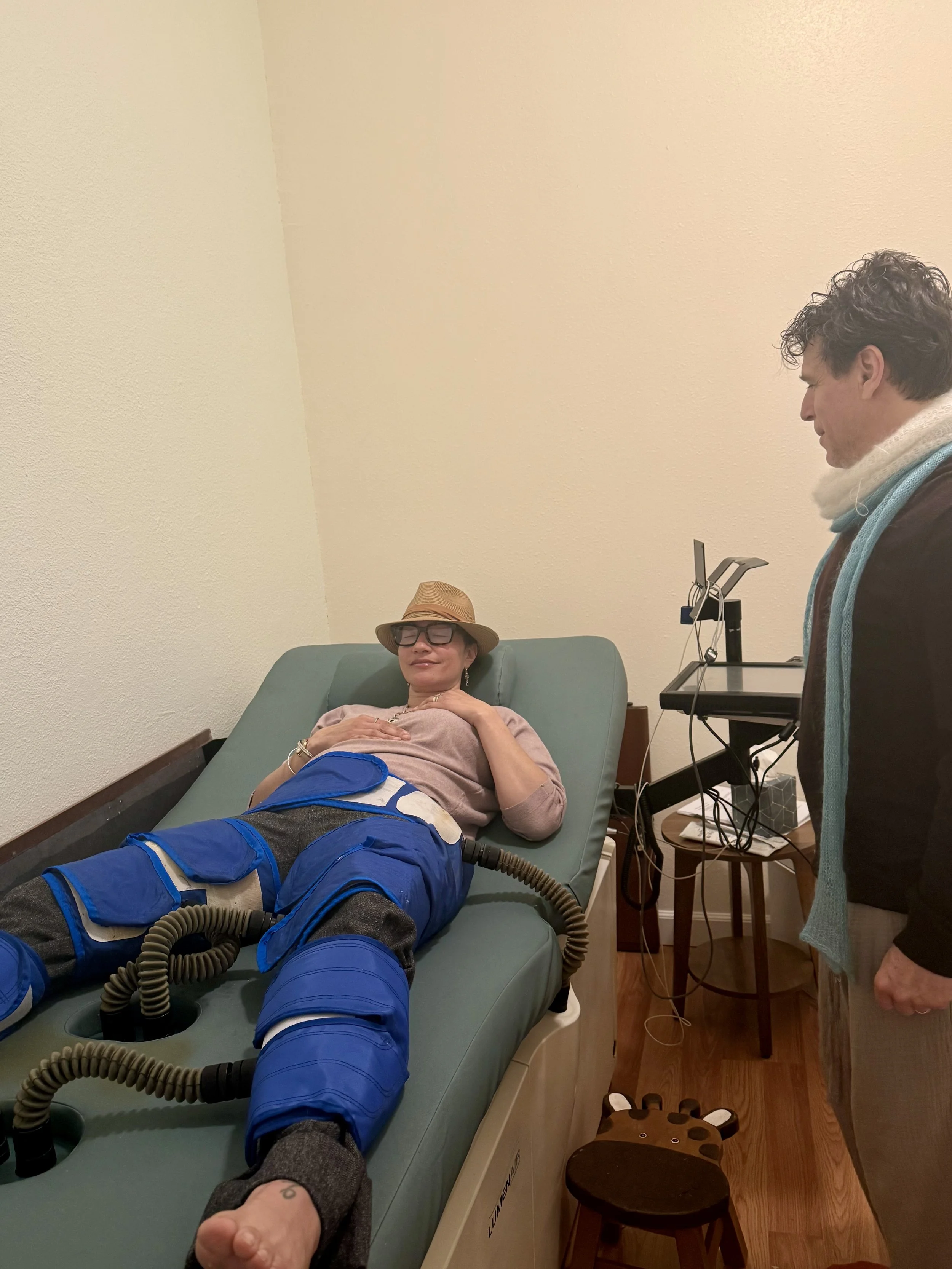 During treatment, you’ll lie on a comfortable table as large cuffs wrap around your legs and hips. Using advanced monitoring, the cuffs gently inflate between heartbeats, helping push blood back to your heart during its resting phase. Then, they deflate just before your heart pumps, reducing resistance and cardiac workload.